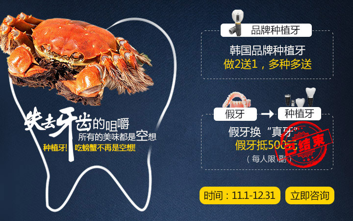 ②【已结束】“假牙”换“真牙”:做种植牙,一副假牙可折抵500元,每人限换一副。